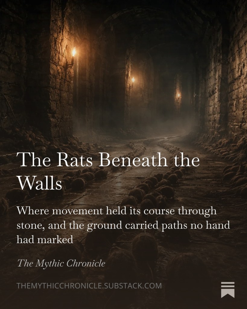The Chronicle entry itself can be entered through The Rats Beneath the Walls on The Mythic Chronicle. It carries the publication’s characteristic mode: immersive prose, archive fragments, interpretive pressure, and the sense that every recovered account belongs to a greater pattern whose full shape remains withheld. For a reader approaching the archive for the first time, this Chronicle serves as a strong threshold because it offers a clear image, a confined space, and a disturbance that widens as the record expands outward from one household into the wider district.