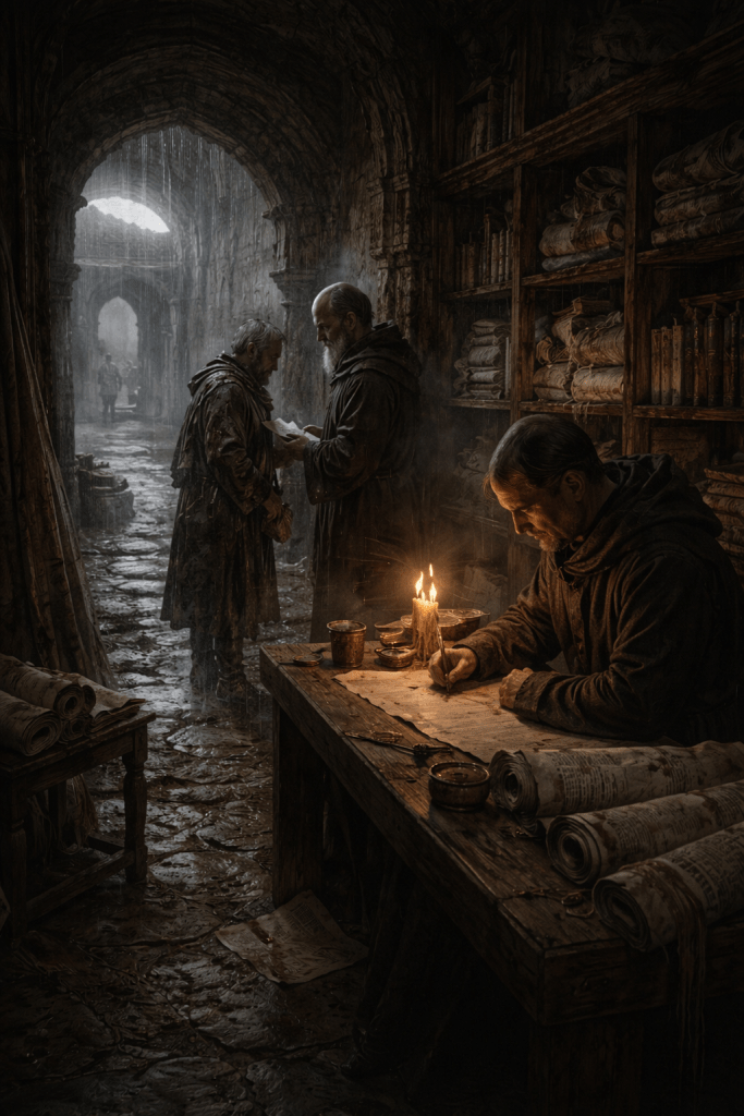 That is where the series becomes more than a tale of raid and aftermath. It begins asking what gets lost when order hardens. In Church and pagan conflict fiction, the easy route is spectacle: priests against seers, miracles against curses, doctrine against blood. This saga chooses a quieter road. The real conflict lies in management, naming, classification, burial, transfer, suppression. The hand that seals a coffer may alter history more deeply than the hand that swings an axe.