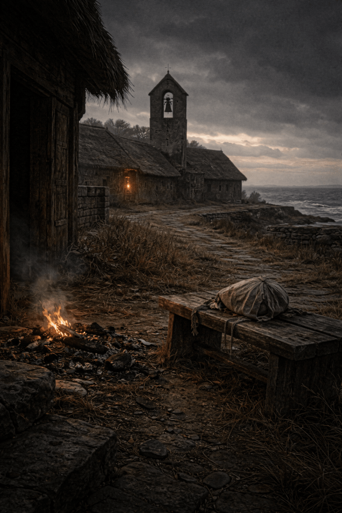The Last Rune Keeper: Shadows Over the North enters this world at the right point: the shore, the monastery, the object taken from a corpse, the sense that something foreign has already crossed into local ground. As Novella 1 of Arc One, The First Wound, it establishes the 793 Lindisfarne era as lived experience rather than distant history. Eadric retrieves a whalebone charm from the shoreline, carries it into monastic custody, and from there the whole atmosphere of the novella begins to tighten. The Church answers with sealing, removal, and burial language. Eadric answers with touch, perception, measured restraint, and a growing awareness that the objects under his care are far from inert.