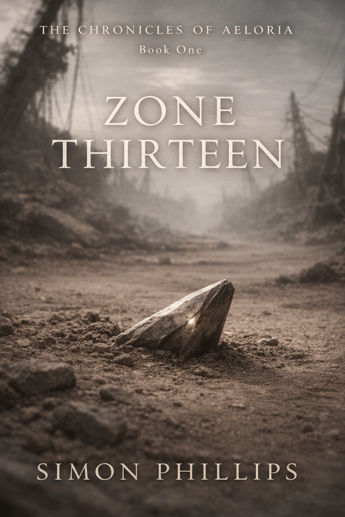 For a mythic sci-fantasy novella, this kind of place matters. Power rarely begins inside palaces or temples. It begins where nobody expects consequence to gather. It begins in forgotten ground, beneath broken infrastructure, among salvage routes and old machines that still carry a faint memory of function. In Zone Thirteen, the opening movement of The Chronicles of Aeloria, the world does not announce itself through prophecy. It presses against the skin first.